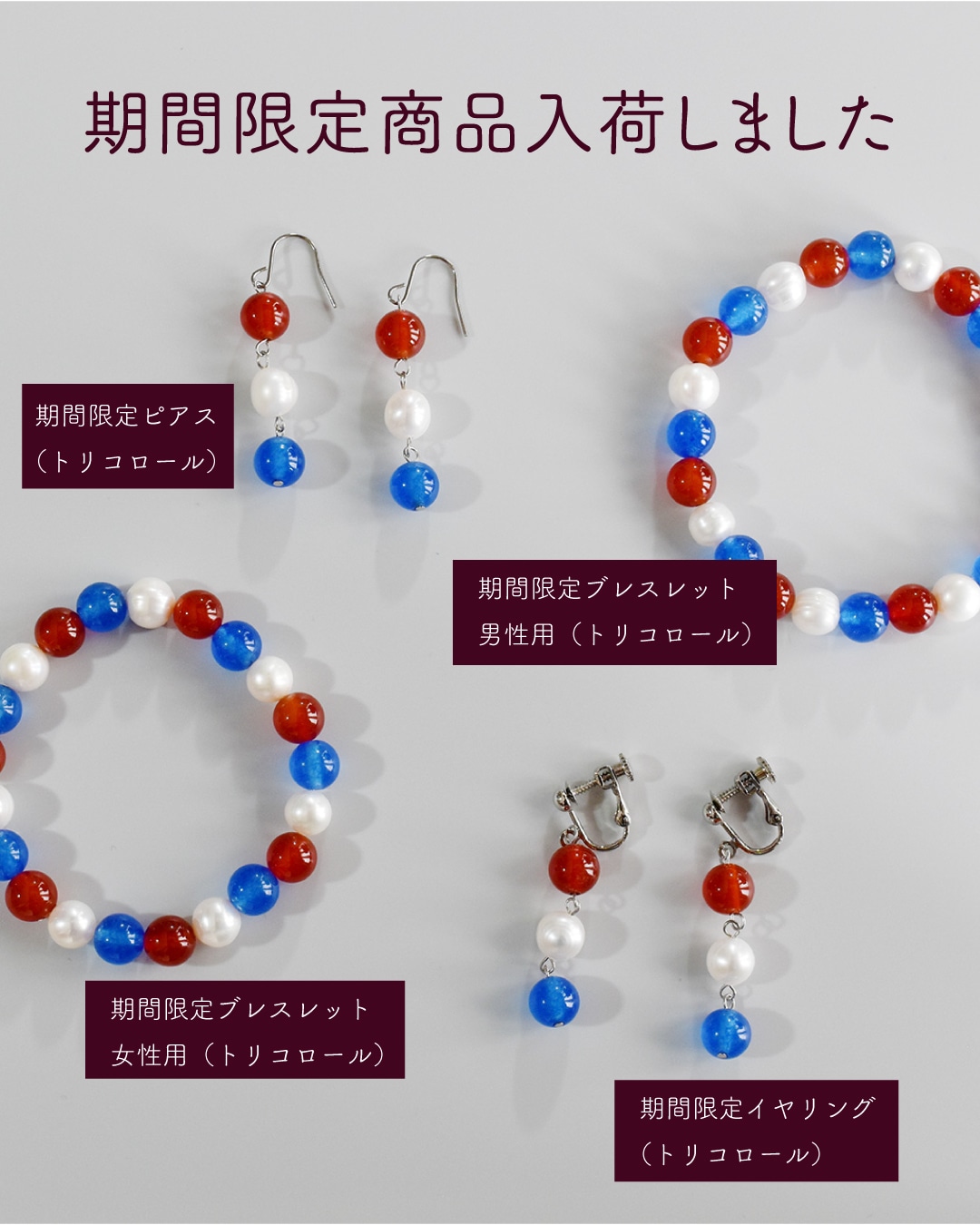 色鮮やかなトリコロールのアクセサリーを、どうぞお楽しみください。