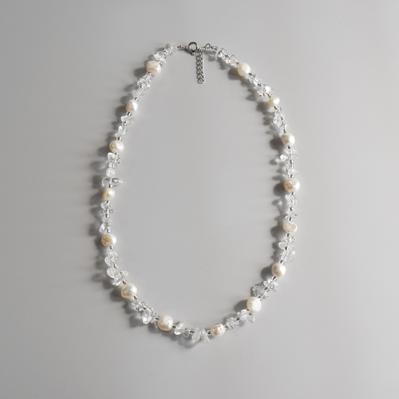 本物の淡水真珠と天然石の水晶を使用しています。