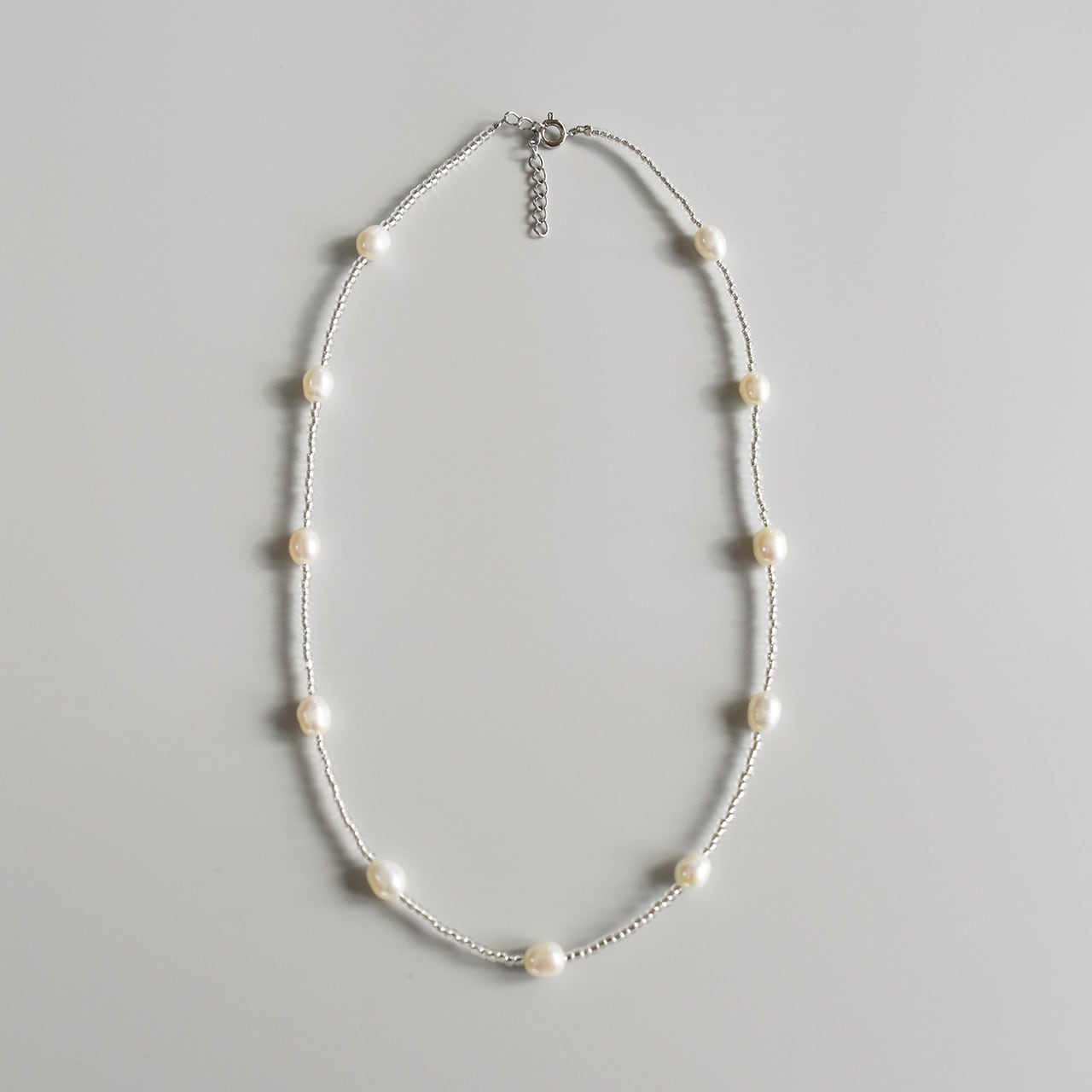 白色のライス型淡水真珠をメインとしたネックレスです。